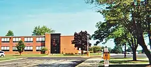 Stow High School was established in 1907 with classes held at the new centralized school building at the northwest corner of Hudson Road (later Darrow Road) and Graham Road in Stow. Early classes were much smaller than they are today; as such, the first class did not graduate until 1909, and there was no class of 1915. The school received full accreditation in 1914 and the village of Munroe Falls joined the school district in 1916.[6] Enrollment growth necessitated construction of a separate high school building, which opened in 1924 across the street at the southwest corner of Darrow and Graham Roads. This structure was later renamed in 1968 for Velma Workman, who retired in 1967 after teaching in the Stow schools for 37 years. Continued enrollment growth in the 1950s and into the 1960s led to construction of an addition to the building in 1953, followed by a new high school at 1819 Graham Road, approximately one-half-mile (0.80 km) west of the Darrow-Graham intersection. This building, known as the Lakeview building, opened in 1963 as "Stow Senior High School".[7][8][9][10]