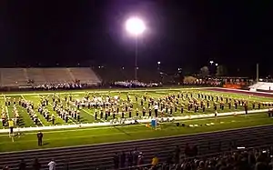 With more than 250 students participating for the 2019–20 school year, the band program is the largest organization at Stow–Munroe Falls High School. The Bulldog Marching Band performs during football games in the fall, and at season's end, members are placed into one of four concert bands: the Freshmen Concert Band, the Maroon Symphonic Band, the Gold Symphonic Band, or the Wind Ensemble. Additionally, a jazz program consisting of three jazz bands – Jazz 1, Jazz 2, and Jazz Lab – is offered as an extracurricular activity. Bands and band members also compete at Ohio Music Education Association (OMEA) adjudicated events, often receiving superior ratings.[33][35][36][37] The Bulldog Marching Band has twice won the AAA-class competition at the Gator Bowl in Jacksonville, Florida: first in December 1991, then in January 1996. In 2000, the Wind Ensemble performed for the OMEA State Professional Convention, one of three high school bands selected out of 200 statewide through a blind audition.[38][39]