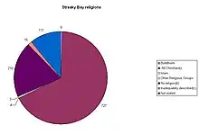 In the 2011 census, Streaky Bay had a population of 1,625.[21] The majority (86%) of residents were born in Australia; with the other 223 born overseas, primarily in the United Kingdom. The most common response for religion was "No Religion" 26.6%, followed by Catholic 22.7%, and Anglican 17.2%.[3]