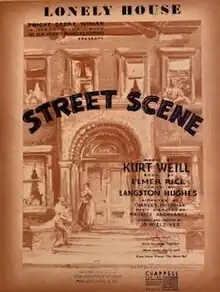 Street Scene is an American opera by Kurt Weill (music), Langston Hughes (lyrics), and Elmer Rice (book). Written in 1946 and premiered in Philadelphia that year, Street Scene is based on the Pulitzer Prize-winning 1929 play of the same name by Rice.