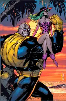 In the 1992 miniseries "The Infinity War", Strong Guy participates in Earth superheroes' war against the Magus.[17] He is specifically chosen to be one of the heroes to mystically travel the dimensions. He first participated in a fight with the alien Infinity Watch, holding up against such cosmic powerhouses as Drax the Destroyer. He later played a vital part in the final battle against the villain's doppelganger's hordes, though this was a distraction so other forces could go in and defeat the villain.[17]