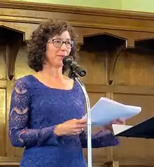 Sue Wootton, photographed at a reading in Knox Church, Dunedin in March 2016