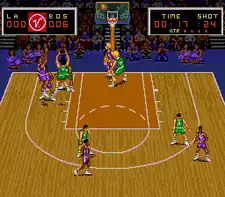 The game features 28 fictional teams; 27 of them are based on real cities while the 28th is an all-star team. There is an exhibition and a playoffs mode. Earvin "Magic" Johnson gives the pre-game commentary about the strengths of the teams, while broadcaster Chick Hearn gives the play-by-play during the game.[3]