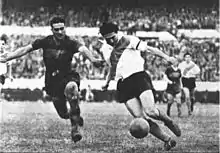 Angel Labruna dribbling in a 1950 match