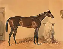 Surplice was a dark bay horse with a small white star standing 16.1 hands high,[1] making him an unusually large Thoroughbred for his time.[2] He was bred by Lord George Bentinck, the dominant figure in British horse-racing of his era.[3] In 1846, Bentinck decided to concentrate on his political affairs and sold all his racing interests, including the yearling Surplice, to Edward Lloyd-Mostyn for £10,000.[4] A condition of the deal was that Surplice should remain with his trainer John Kent at Goodwood. Later that year Mostyn sold Surplice to Lord Clifden.[3]