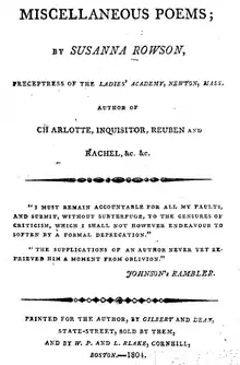 Media related to Susanna Rowson at Wikimedia Commons- Works by Susanna Rowson in eBook form at Standard Ebooks