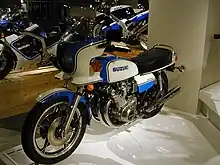 The Suzuki GS series was Suzuki Motor Corporation's first full range of 4-stroke powered road motorcycles, having previously almost exclusively manufactured 2-stroke machines. Suzuki had produced the 4-stroke Colleda COX 125cc and 93cc 4-stroke single-cylinder machines in 1955[1] however the rest of Suzuki's production from 1952 to 1976 had been increasingly sophisticated two-stroke road machines, whose ultimate expression was the 750cc 3-cylinder water-cooled GT750.