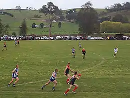Despite its small population, Swifts Creek boasts a number of sporting clubs. The Swifts Creek Demons Australian Rules Football team has been in existence for over 100 years. They currently compete in the Omeo & District Football League (ODFL), and have won 25 premierships including several in recent years. The team wears a blue jumper with a red vee, the traditional strip of the Melbourne Football Club AFL team. The affiliated Swifts Creek Netball Club also has a long and successful history, and wears a blue top with red skirt. Both football and netball clubs also have junior teams.