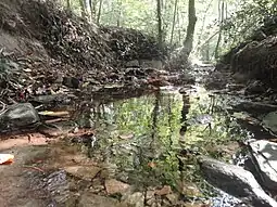 Swithland Wood is a public woodland in Charnwood Forest, in Leicestershire. Although close to the village of Swithland, it is almost entirely within the parish of Newtown Linford, just north of Bradgate Park and also near Woodhouse Eaves and Cropston. The wood is Leicestershire's most important ancient woodland for nature conservation.[6] Quarries within the wood were a source of the distinctive Swithland Slate roofs found on many local buildings as well as the slate gravestones common in Leicestershire churchyards. Swithland Wood has been a public woodland since 1925, upon its acquisition by the Leicester Rotary Club, having previously been part of the estate of the manor of Groby. Since 1931 it has been managed by the Bradgate Park and Swithland Wood Trust.[7]
