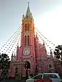 It was built during the French colonial period in the 1870s and completed on 16 December 1876, when Vietnam was part of French Indochina. The architecture is mainly neo-Romanesque, but it also has some neo-Gothic and neo-Renaissance elements.[1] It has been painted pastel-pink both on the exterior and interior since 1957,[1] earning it the nickname "the pink church" (nhà thờ màu hồng).[2]