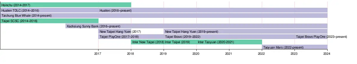 | Taipei Bravo PlayOne | Taipei | 5th | 2017 |