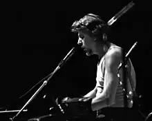 In 1974, Mayall recorded The Latest Edition,[23] produced by Tom Wilson for the Polydor label. The group featured jazz saxophonist Red Holloway, drummer Soko Richardson, bassist Larry Taylor, and two guitarists, Randy Resnick and Hightide Harris. The band toured Europe and Asia that year. During the next decade Mayall continued shifting musicians and switching labels and released a score of albums. Tom Wilson, Don Nix and Allen Toussaint occasionally served as producers. At this stage of his career most of Mayall's music was rather different from electric blues played by rock musicians, incorporating jazz, funk or pop elements and even adding female vocals. A notable exception is The Last of the British Blues (1978), a live album excused apparently by its title for the brief return to this type of music.[24]