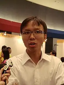 A localism supporter to reduce quota of Chinese One-way Permit,[18] Tam in 2013, along with various pro-democracy legislator and activists, initiated the anti-assimilation, anti-communization, anti-Leung movement, urging a stop to Chinese interference in Hong Kong and the resignation of Leung Chun-ying as Chief Executive.[19] Tam also called on Taiwan to alert growing Chinese influence.[20] Tam is also a supporter for Taiwan independence to preserve democratic institutions and defend local culture after he described Hong Kong's One Country, Two Systems as a failure.[21] He further protested against the influx of Chinese migrants which overburdened Hong Kong's medical system.[22]