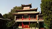 Taoranting Park (simplified Chinese: 陶然亭公园; traditional Chinese: 陶然亭公園; pinyin: Táorántíng Gōngyuán, also known as Leasure Pavilion Park or Taoran Pavilion Park) is a major city park located in Xicheng District to the north of Beijing South railway station, in the southern part of the city. A former location for literati to get together, while most of Beijing's gardens were reserved only for imperial families during the Qing dynasty, it gained its name from a poem by the Tang dynasty poet Bai Juyi, "Wait till the chrysanthemums are yellow and home-made wine is ripe, (I'll) drink with you and be carefree."(更待菊黄家酿熟,与君一醉一陶然).
