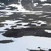 Valter Schytt remained the leading personality and promoted the development of the research station until his death in 1985.[3] The number of station buildings gradually increased and annual university courses at Tarfala Research Station could start in 1959. Tarfala Research station was officially opened as a research station of Stockholms University in 1961 and expanded by four buildings through a grant from the Wallenberg Foundation. A sauna, a laboratory, a lecture hall and additional living quarters were added in the following years. Winter storm destroyed some buildings in 1975, 1985 and 1993; spring slush avalanches damaged the laboratory hut in 1982 and again in 1991. The damaged buildings were repaired or reconstructed during the following summers.