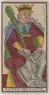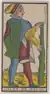 As well, there are four face cards in each suit: a Valet (Knave or Page), Chevalier or Cavalier (Horse-rider or Knight), Dame (Queen) and Roi (King). The court cards are sometimes called les honneurs (the honours) or les lames mineures de figures (the minor picture cards) in French. For the valet de bâtons (French > "Page of Batons"), the title of that card generally appears on the side of the card, while in some old versions of the Tarot de Marseille that card, along with either some or all others, is left unnamed.
