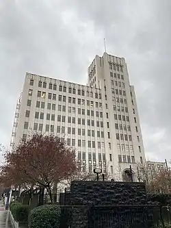 The Terminal Sales Building is an historic building in Portland, Oregon, United States. One of the few pieces of prominent Art Deco architecture in Portland, it is the only high-rise example. While the building's design may be credited to Wilfred Frank Higgins, Mr. Higgins was working under the architect A.E. Doyle, who referred to Higgins as his draftsman.[2][3] Doyle was so involved with the project, that he continued to direct Higgins even while traveling in Europe, wiring the office instructions on paint specifications.[4]