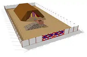 The Tabernacle also exhibited similarities with Mount Sinai. Both Mount Sinai and the Tabernacle had three separate areas with increasing levels of exclusivity—one for the people generally, one for the anointed class, and one for only the single representative of the people;[36] the tablets of the law[37] a cloud;[38] and God's presence.[39] And God spoke to Moses at both Mount Sinai and the Tabernacle.[40] But in contrast to Mount Sinai, with the Tabernacle God's presence was constant; God's presence was in their midst, no longer distant; and God's presence was no longer rooted to a fixed place.[41]