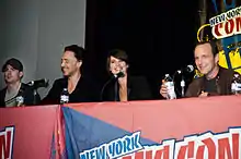 Clark Gregg appears as Phil Coulson, a S.H.I.E.L.D. agent who oversees many of the division's field operations.[40] Gregg was cast as part of a multi-picture deal with Marvel.[41] Gregg said his role was expanded in The Avengers: "[What] Agent Coulson had become in terms of the import of this particular story, and how important his job is in bringing the Avengers together, it kind of felt a little surreal, like somebody was playing a prank and that wasn't the real script. But it wasn't, it was the real thing, I got to show up and do that stuff, and it felt like such an amazing payoff to what the journey had been and the fact I had been doing it for five years."[42] Gregg said Whedon provided insight into his character's backstory, particularly about Coulson being a fan of Captain America.[42] Cobie Smulders appears as Maria Hill, a high-ranking S.H.I.E.L.D. agent who works closely with Nick Fury.[43] Smulders, whom Joss Whedon once considered for his unproduced live-action Wonder Woman film, was selected from a short list of potential actresses including Morena Baccarin. Smulders' deal would integrate her into nine films.[44][45] Regarding her preparation, Smulders said, "I hired this amazing black-ops trainer to teach me how to hold a gun, take me to a shooting range, how to hit, how to hold myself, how to walk and basically how to look. I don't do a ton of fighting in the movie, which is why I wasn't offered a trainer, but I wanted to look like I had the ability to."[46] On relating to the character, Smulders said, "I can relate to her being a mom and being a businesswoman and trying to work full-time and raising a family and having a career. We're asked to do a lot of things these days. I feel she is just all about her job and keeping things going."[47]