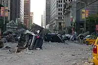 Principal photography concluded in New York City, where filming occurred over two days.[109] Locations there included Park Avenue and Central Park.[110][111] For scenes taking place in Manhattan, visual effects supervisor Jake Morrison shot aerial footage for over three days to use as background plates, elaborating that his main objective was to "get as much aerial work in as possible for the audience to see the big expanses, the wide establishing shots, while also making sure that the effects work doesn't look too computer-generated". "We're getting much better at making entirely computer-generated environments," Morrison explained, "but there is no substitute for starting with a real image and adding what you need."[112]