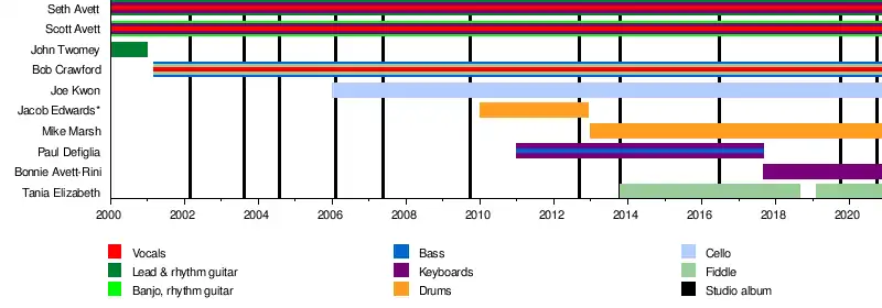 - Seth Avett – lead and backing vocals, guitar, hi-hat, piano, drums, kazoo, percussion (2000–present)