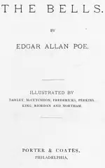 Poe is believed to have written "The Bells" in May 1848 and submitted it three times to Sartain's Union Magazine, a magazine co-owned by his friend John Sartain, until it was finally accepted.[12] He was paid fifteen dollars for his work, though it was not published until after his death in the November 1849 issue. It was also published in Horace Greeley's the New York Daily Tribune newspaper on the front page of its October 17, 1849 issue as "Poe's Last Poem".[13]