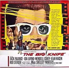The Big Knife is a 1955 melodrama directed and produced by Robert Aldrich from a screenplay by James Poe based on the 1949 play by Clifford Odets. The film stars Jack Palance, Ida Lupino, Wendell Corey, Jean Hagen, Rod Steiger, Shelley Winters, Ilka Chase, and Everett Sloane.[5]