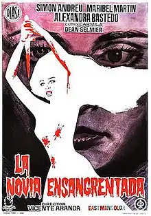 The Blood Spattered Bride (Spanish: La novia ensangrentada) is a 1972 Spanish horror film written and directed by Vicente Aranda, based on the 1872 vampire novella Carmilla by Joseph Sheridan Le Fanu.[1] It stars Simón Andreu, Maribel Martín, and Alexandra Bastedo. The film attained cult film status for its mix of horror, vampirism, rejection of fascism, and progressive ideas on gender and sexuality.[2] A well-known US trailer advertising a double feature of this film paired with the 1974 horror film I Dismember Mama was filmed in the style of a news report covering the "story" of an audience member who had gone insane while watching the films.[3]