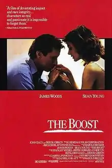The Boost is a 1988 American drama film directed by Harold Becker and based on the book Ludes: A Ballad of the Drug and the Dream by Ben Stein.[2] It stars James Woods, Sean Young, John Kapelos, Steven Hill, June Chandler and Amanda Blake.[3]