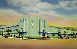 RCA's decision to expand television studio facilities required moving to the real estate market in the San Fernando Valley-Burbank area, with land purchased from Jack Warner.[3] The newly-christened NBC Color City Studios opened in March 1955, as the first television studio designed specially for the origination of color television broadcasting, although their rivals, ABC and CBS would gradually add color broadcasting to their studio facilities in later years.