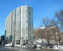 The cathedral's main building was made a city landmark in June 2003, but the designation was overturned that October, since it did not cover the entire cathedral close.[198] At the same time, St. John's officials wanted to lease out the lots at the northern and southern borders of the cathedral close for further development, a move that preservationists unsuccessfully attempted to prevent.[199] Ultimately, two residential buildings were erected on these lots: Avalon Morningside Park on the southern lot and the Enclave[200] on the northern lot.[201][202] In 2017, the cathedral close was re-designated a city landmark, except for the two new residential buildings.[203] The next year, the first phase of the north transept's renovation was finally completed,[78] and work began on a renovation of the crypt.[204]