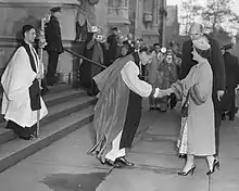In 1923, Burch's successor William T. Manning announced a $15 million capital campaign to raise money for this project.[132] The New York campaign committee, headed by then-governor Franklin D. Roosevelt, campaigned from 1923 to 1925 to raise $6 million (equivalent to $102,000,000 in 2022).[133][134][135] By May 1924, Manning announced that $2.5 million had been donated within the previous three months, and that work on the nave would soon begin if that rate of donation were to continue.[136] St. John's was seeking price estimates for the nave's construction by that November,[137] and the baptistery was donated the same year.[127] Some $7.7 million had been raised by February 1925,[138] and the laying of the nave's cornerstone occurred on November 9, 1925.[139][140] Manning wanted the cathedral to be an interdenominational place of worship, but was still reluctant to add other denominations' members to the board of trustees.[141] Notably, Manning rejected a request from John D. Rockefeller Jr., a Baptist,[142][143] despite the latter's $500,000 donation toward the cathedral's building fund.[142]