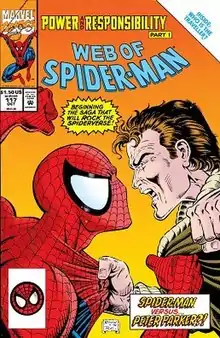 ![]() Cover to Web of Spider-Man #117 (October 1994), which officially launched the 1990s "Clone Saga" | |||