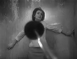 A week of shooting took place from 28 October 1963, consisting mostly of inserts of the city and models.[24] Rehearsals for the cast began on 11 November; Nation only attended one session, due to work commitments. Some of the Dalek dialogue was pre-recorded on 13 November by Hawkins and Graham, portraying the higher-pitched "Dalek One" and lower-pitched "Dalek Two", respectively.[25] Weekly recording of the serial began on 15 November;[26] it was later discovered that the first recording was affected by induction—an effect in which the voices from the production assistants' headphones was clearly audible. The episode was re-recorded on 6 December, pushing the weekly recordings of episodes 4–7 back by one week.[27] The final episode was recorded on 10 January 1964.[24]
