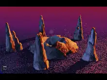 When Moriarty took over, he decided to start again from scratch. This version of the production was more similar to the released game, but it contained one extra character: a Japanese business tycoon and science-hobbyist named Toshi Olema, who uses his money to buy his way onto the Attila project crew.[9] Toshi would have met a gruesome death when he stumbled into a cavern with acid dripping from the ceiling, and the other astronauts would have been unable to safely retrieve his body and bring him back with life crystals. He was later removed from the story. This version of the game was very bloody and intended for an adult audience. Initially, Spielberg thought this feel was very fitting. After the release of Jurassic Park in 1993, Spielberg received numerous complaints from parents who had ignored the PG-13 rating and brought their young children to see the film, only to discover that it contained some sequences of horror, blood, and violence. Thus, worrying that parents would make a similar mistake and purchase The Dig for their children, Spielberg requested the violence be toned down.[10] Other notable design ideas which were dropped during the game's production include a survival game angle, which forced the player to keep water and food supplies for life support, and exploration of cities on the planet.[11] Although The Dig was announced for release in Q2 1992, it ultimately did not launch until December 1995.[12]