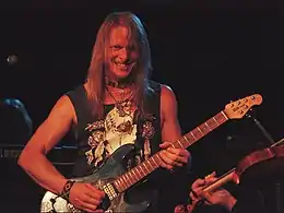![]() Allen Sloan (left) and Andy West (center) of Dixie Dregs live in 1999 | |