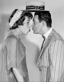 ![]() Cast photo: Garry Moore, Carol Burnett, and Durward Kirby, 1961 | |
