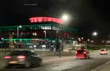 The HALO building on Hill Street, Kilmarnock, is a £63 million brownfield urban regeneration project constructed on a 23-acre site, formerly the home of Johnnie Walker, the world’s leading Scotch whisky brand that was founded in Kilmarnock in 1820 and operated on the site until Diageo closed the Kilmarnock plant in 2012.[3] The building, a 4-storey mixed used structure, is constructed from three main materials - dark brick, curtain wall glazing and a perforated aluminium screen at roof level, features a round LED dome on the roof which illuminates at nighttime. Phase 1 of the complex was completed in July 2021 (the HALO Enterprise & Innovation Hub), with future phases of the sites development consisting of a series of live and work units, a leisure facility, nursery, and over 200 houses. The building has become a symbol of regeneration in Kilmarnock, both in terms of redevelopment of land as well as economic regeneration and recovery.[4]