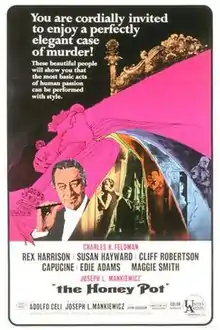 The Honey Pot, also known as The Honeypot, is a 1967 American crime comedy-drama film written for the screen and directed by Joseph L. Mankiewicz. It stars Rex Harrison, Susan Hayward, Cliff Robertson, Capucine, Edie Adams, and Maggie Smith. The film was based on the play Mr. Fox of Venice by Frederick Knott, the novel The Evil of the Day by Thomas Sterling, and loosely on the 1606 play Volpone by Ben Jonson.