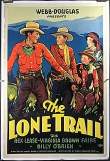 The Lone Trail is a 1932 American pre-Code western film directed by Forrest Sheldon and Harry S. Webb and starring Rex Lease, Virginia Brown Faire and Jack Mower. It was produced as a second feature on Poverty Row.[1] According to a modern source it partly used edited footage from the earlier serial The Sign of the Wolf, although no contemporary confirmation of this exists.[2] It has strong similarities to the plot of the 1935 film Skull and Crown which was based on an earlier story James Oliver Curwood.