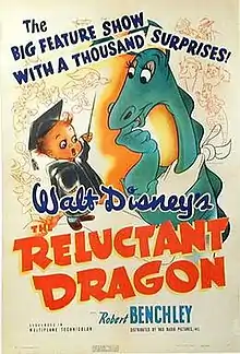 The Reluctant Dragon is a 1941 American live-action/animated comedy film produced by Walt Disney, directed by Alfred Werker, and released by RKO Radio Pictures on June 27, 1941.[1][4] Essentially a tour of the then-new Walt Disney Studios facility in Burbank, California, the film stars Algonquin Round Table member, film actor, writer and comedian Robert Benchley and many Disney staffers such as Ward Kimball, Fred Moore, Norman Ferguson, Clarence Nash, and Walt Disney, all as themselves.