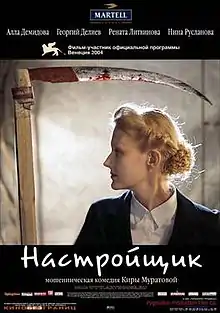 The Tuner (Russian: Настройщик, romanized: Nastroyshchik) is a 2004 Ukraine/Russia mix film of art house grotesque and a sting comedy. At the heart of Kira Muratova’s film is her characteristic and enduring love of predation—predation for its own sake. The film offers a complex assessment of the human subject, civilization, and the creative act. It premiered out of competition at the 61st Venice International Film Festival