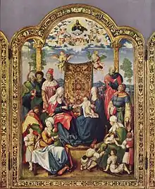 Wolf Traut painting of the Holy Kinship (1514): Saint Anne with her three daughters, her husband and theirs, and her grandchildren