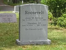 {{cite magazine}}:|last1=has generic name (help) - "Paid Notice: Deaths ROOSEVELT, ANNE MASON BABCOCK". The New York Times. 2001-02-02. ISSN 0362-4331. Retrieved 2016-06-28.