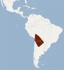 Its range includes Peru, Bolivia, and Argentina.[10] In March 2006, it was documented in Brazil for the first time.[12] A paper published in 2015 cited its first ever documentation in Chile.[11]