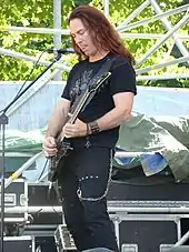 Youngblood is the only founding member continuously active in the band since its formation.[3] He is also the CEO of KMI Entertainment, who are responsible for Kamelot's management and booking.[14] With Kamelot, Youngblood played multiple headliner tours during the last 20 years in America, Asia, Australia and Europe and some of the biggest festivals like Wacken Open Air,[15] Sweden Rock Festival,[16] Sonisphere Festival,[17] and Rock am Ring.[18] After Kamelot released their 2023 studio album, The Awakening, the first single of the album, "One More Flag in the Ground", was under consideration for the Grammy for Best Metal Performance.