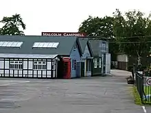 In 1926 Malcolm Campbell had opened the 'Campbell Shed' at Brooklands, trading in racing sports cars. As the name suggests, this was a simply constructed wooden shed but it grew bigger and bigger, even being used to hold a barn dance in 1931.[1] The famously impetuous Campbell lost interest though and handed it over to Thomson & Taylor. The shed survives today as part of the Brooklands Museum.[2]