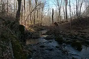 The Titicus River is an 8.5-mile-long (13.7 km) river in southwestern Connecticut and southeastern New York that drains into the Titicus Reservoir, part of New York City's water supply system. Part of both the Croton River watershed and the system's Croton Watershed, has a 23.8 square miles (62 km2) drainage area.[1] It is one of the few rivers with headwaters in Connecticut that is part of the system. The source of the river is in Ridgefield, Connecticut. About one mile down stream, the stream marks the southern boundary of the Kiahs Brook Reserve. Another 0.5 miles downriver, it joins with Kiahs Brook, and then runs fairly close to Route 116.[3] Once past the New York border, the Titicus River still runs close to New York 116 until emptying into the Titicus Reservoir. After the Titicus Reservoir, it runs another 0.5 miles, under I-684, and drains into the Muscoot Reservoir.