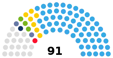 The 91 members of the National Assembly are elected by closed list proportional representation from 30 multi-member constituencies ranging in size from two to ten seats. Seats are allocated using the highest averages method.[3]