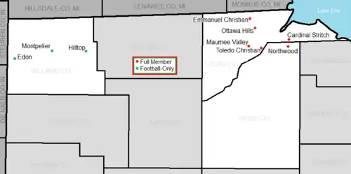 Edon, Hilltop, and Montpelier are primarily members of the Buckeye Border Conference for all sports, except for football, which is the only sport that they compete in the TAAC for.